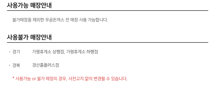 [이용안내] 1) 포인트 적립 및 제휴카드 할인은 브랜드사 정책에 따릅니다. 2) 본 쿠폰은 매장 방문 시에만 사용이 가능합니다.(배달앱 및 타 온라인 사용 불가) 3) 사용가능 시간은 매장별로 오픈, 마감시간, 휴무일이 다르므로 이용매장에 문의 바랍니다. 4) 표기된 유효기간 내에 사용 가능하며 교환 후 취소가 불가합니다. 5) 구매금액 초과시 차액을 지급하시면 추가상품 구매가 가능합니다. 6) 잔액은 60% (단, 1만원권 이하는 80%) 사용 시 반환 가능하며 유효기간 연장도 가능합니다. 7) 프로모션(할인) 상품의 경우 할인율 제외 후 잔액환불 됩니다. 8) 사용 유효기간 만료 시 잔액의 90%가 환불이 가능합니다. (할인받아 구매한 경우 중복 차감됨) 9) 잔액 환불은 슈퍼콘 고객센터 문의(카카오 채널'슈퍼콘'검색후 상담하기)바랍니다.